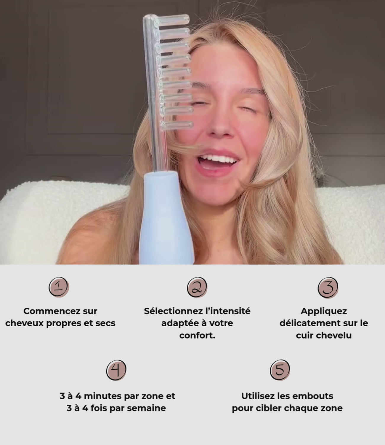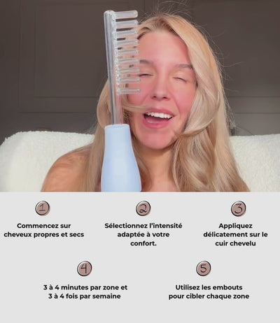 La technologie haute fréquence qui réactive la pousse des cheveux, apaise le cuir chevelu et redonne densité et vitalité.